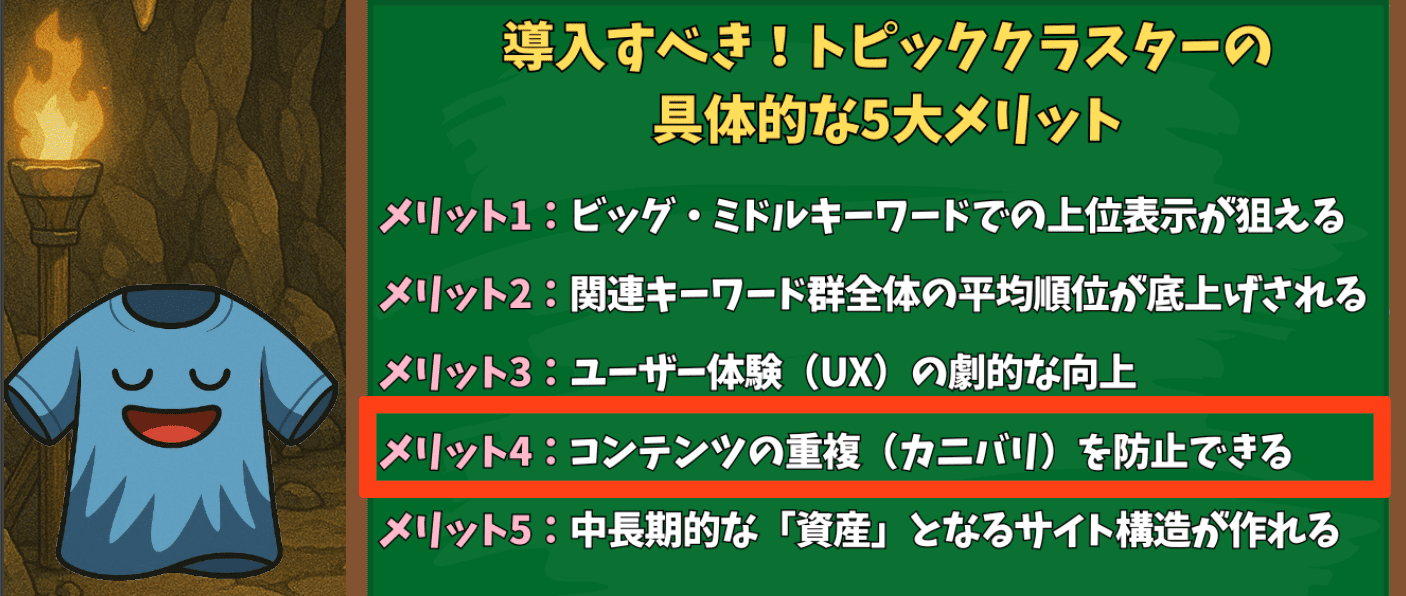 メリット4:コンテンツの重複(カニバリ)を防止できる